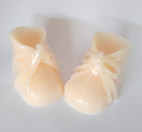 Aquests sabons artesanals en forma de sabatetes de nadó estan fets amb glicerina vegetal, oli d’ametlles dolces i una dolça essència de baby.
